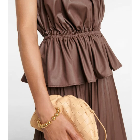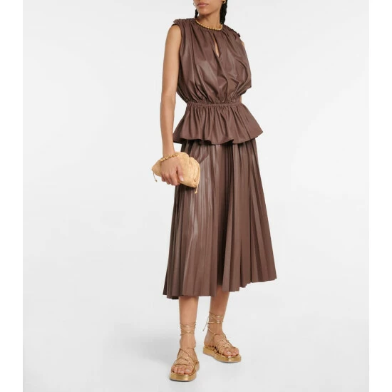 Altuzarra’s Baldur top features a high neckline and a cinched waist for a softly pleated effect. The sleeveless design is made from a coated faux leather fabric and has a peplum hem.