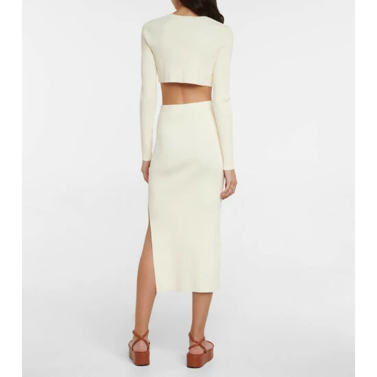 The supremely cropped Blazar cardigan from Altuzarra is made from a compact knit. The finely ribbed design has a covered button-down front and perfectly matches the Irvette midi skirt.