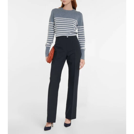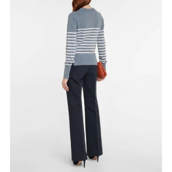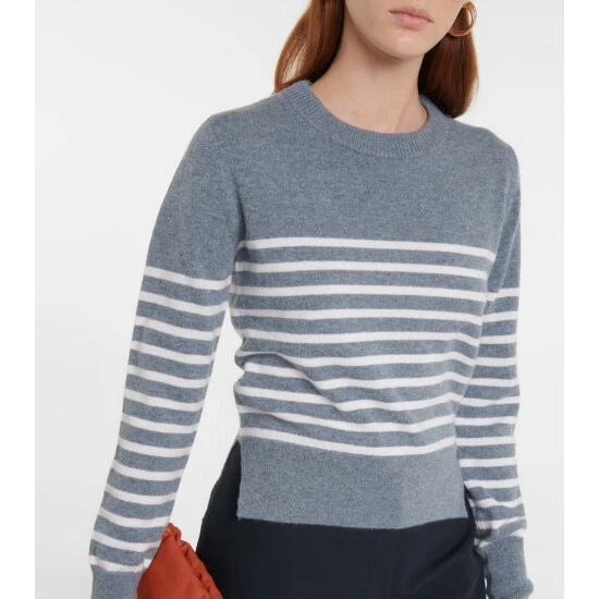 The Camarina sweater from Altuzarra is a hardworking everyday staple with a luxurious composition. Made entirely from cashmere, this crewneck sweater has a striped pattern, tapered sleeves, and split hem.