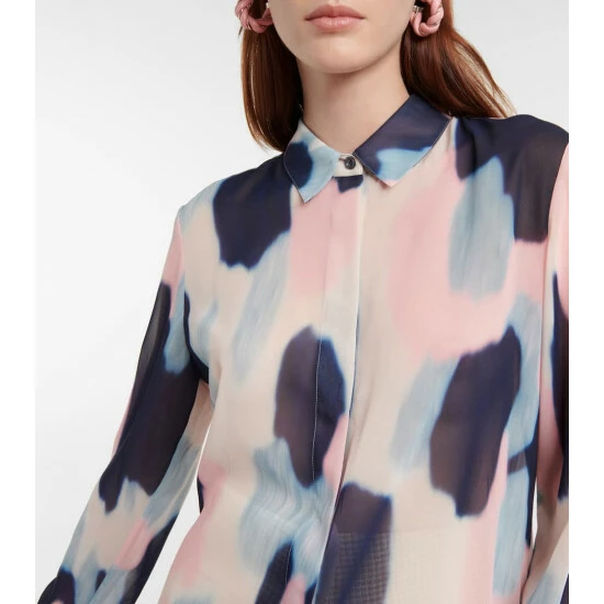 The Chika blouse from Altuzarra showcases a colorful abstract print that makes it a charming choice for work and weekend wear. The lightweight design observes a classic fit that’s framed by a slim point collar.
