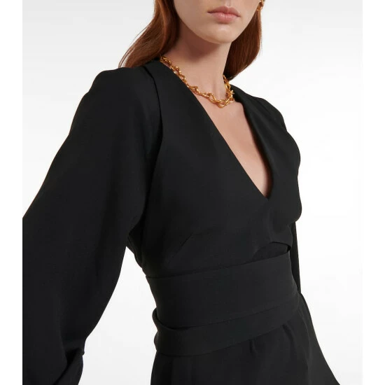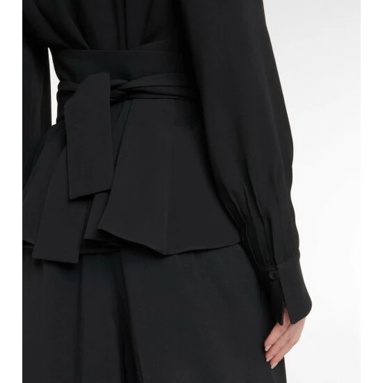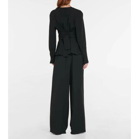 Altuzarra’s Dagur blouse is made from crêpe in classic black. It has a V-neckline and cross-over sash-tie waist.