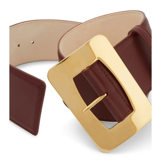 This belt from Altuzarra is made from brown leather and features a large gold-tone brass buckle in a square shape that is designed to catch the eye.