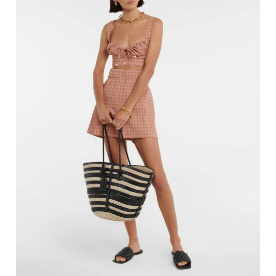 Store everything need for beach days in this spacious striped tote from Altuzarra. Made from raffia with leather trims, it suspends from double top handles complete with a hanging logo charm.