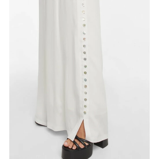 Achieve easy elegance with the Mani pants from Altuzarra. The high-waisted design flows elegantly to a floor-length with wide legs that are accented with pearlescent buttons up the sides.