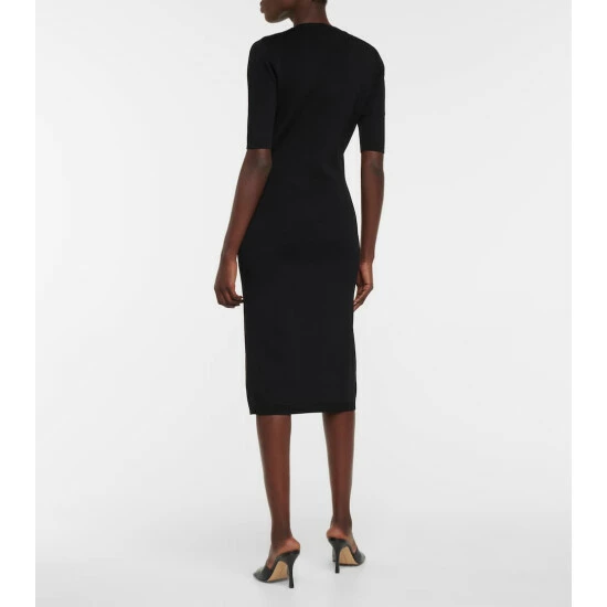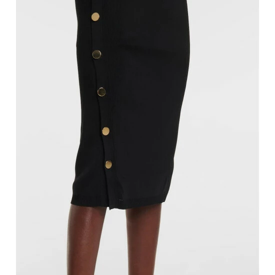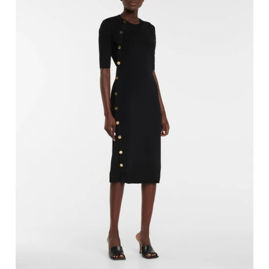 Punctuated with a string of gleaming gold-tone buttons running down one side, this black Minamoto midi dress from Altuzarra can be unfastened for multiple styling possibilities. Made from a lightweight knit fabric, it arrives in a slim-fit silhouette with ribbed edges.