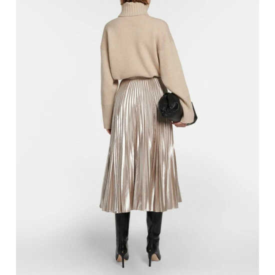 The Sif skirt by Altuzarra is a sculptural design. Defined by a mesmerizing metallic finish, this high-rise, A-line silhouette defines the silhouette with an elasticated waist before flowing into an artfully pleated length.