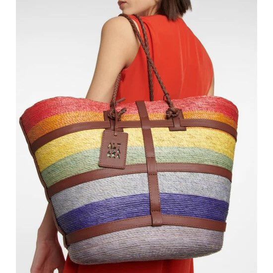 Store everything you need for beach days in the spacious Watermill Large tote bag from Altuzarra. Made from rainbow-striped raffia with leather trims, it suspends from braided top handles.