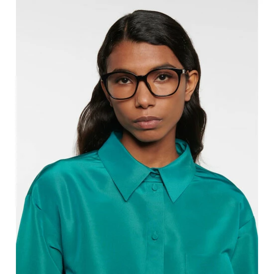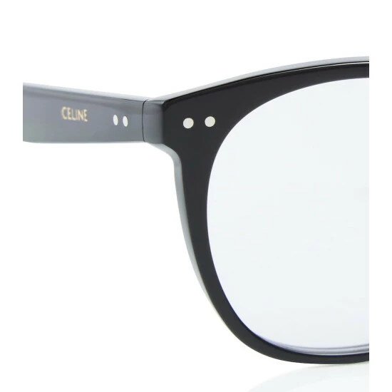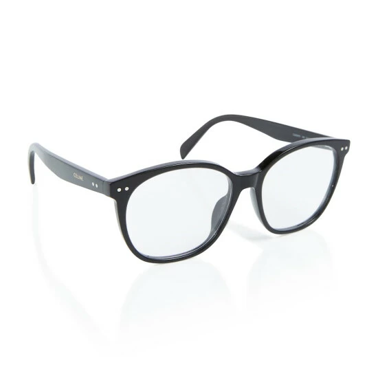 These glasses from Celine Eyewear are made in Italy with black acetate optical frames. They have a classic round silhouette with the signature two-rivet detail at the temples.