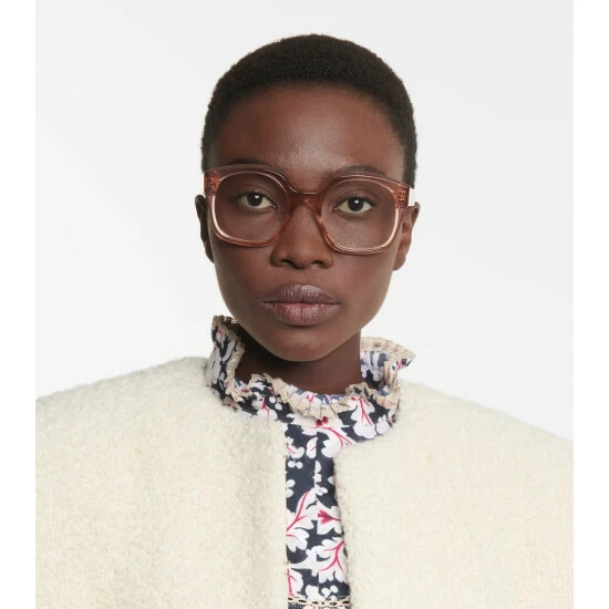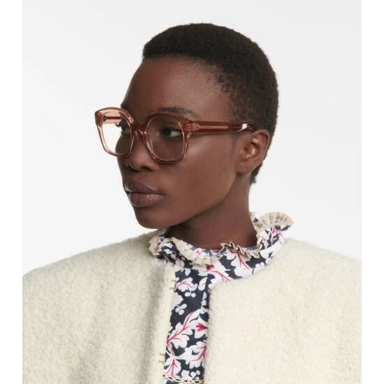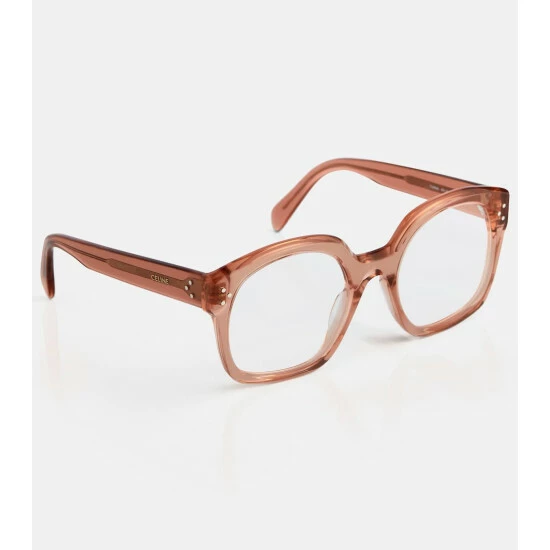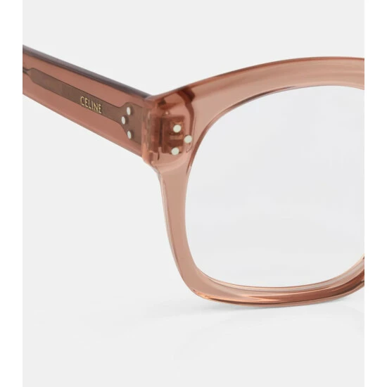 Frame your face in enviable style with these shiny pink glasses from CELINE Eyewear. Made in Italy from lightweight and durable acetate, this pair is fashioned to a classic D-frame shape with subtle branding at the temples and clear lenses.