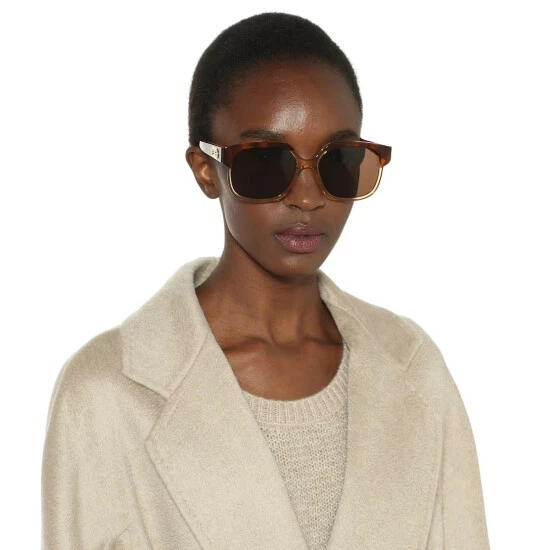 CELINE Eyewear is our go-to label for elegant color combinations, such as the one showcased on the Maillon Triomphe 02 sunglasses. Made from lightweight acetate, the design has a brown tortoiseshell effect with golden trim, while light brown lenses lend a retro-look touch. The label’s new golden Maillon Triomphe insignia gleams at the temples.