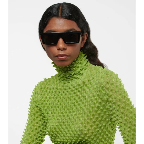These sunglasses from Celine Eyewear have rectangular frames for a dramatic effect. The pair is made from glossy black acetate with tonal lenses. Please note the color of the protective case may vary.