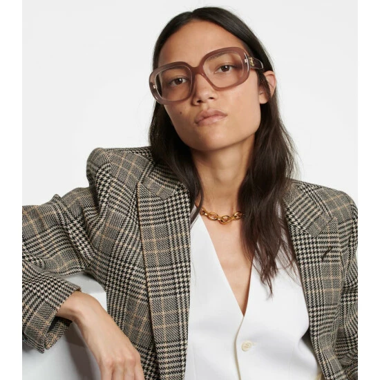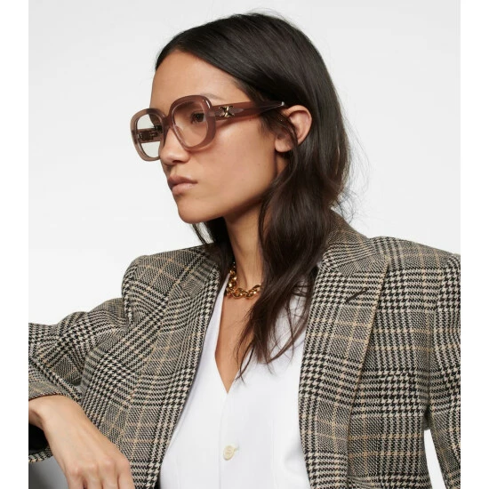 These glasses from Celine Eyewear have translucent acetate frames in a rounded silhouette. They are embellished along the temples with gold-toned logo detailing.