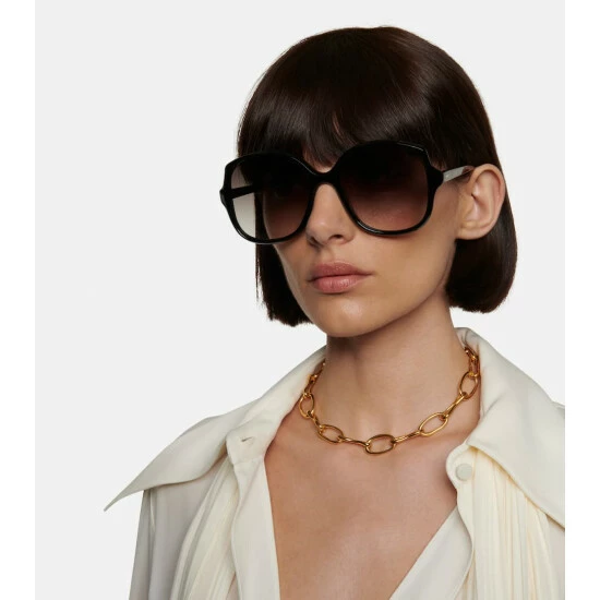 CELINE Eyewear’s oversized sunglasses are inspired by frames of a bygone era. Made from shiny black acetate, they feature signature dot detailing and logo engraving at the temples. Store them in the logo-embossed case when not in the sun.