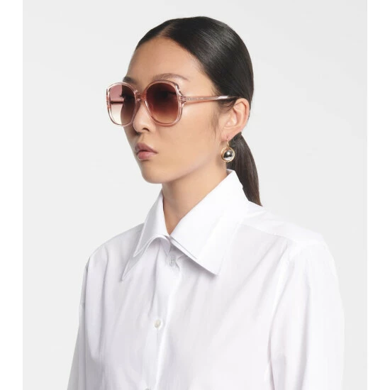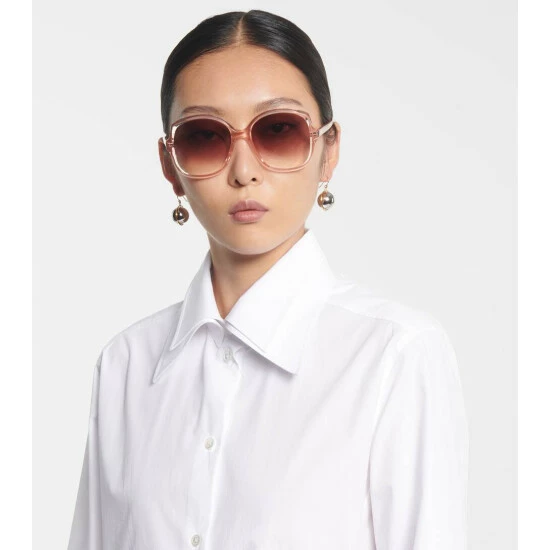 CELINE Eyewear’s oversized sunglasses are inspired by frames of a bygone era. Made from pink acetate, they feature signature dot detailing and logo engraving. The tonal pink-tint lenses provide full protection from UVA and UVB rays.